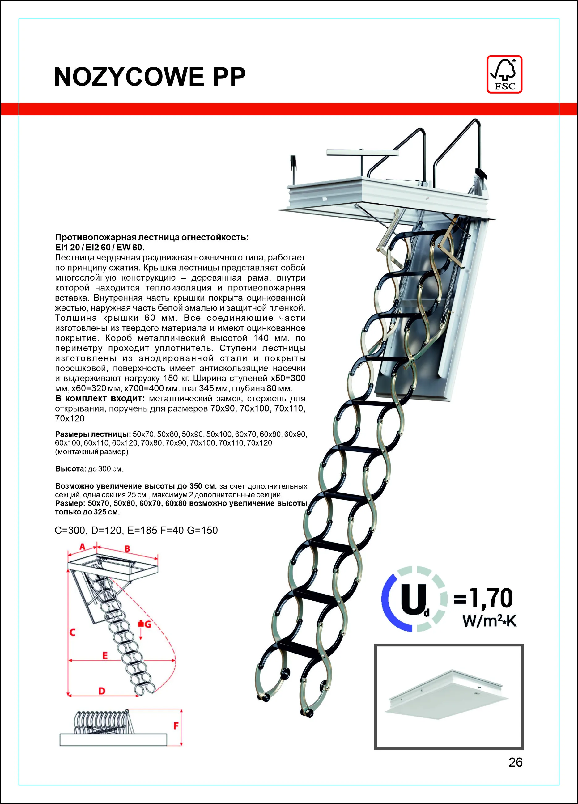 Чердачная лестница FAKRO LWS 70×120 см, h280 см