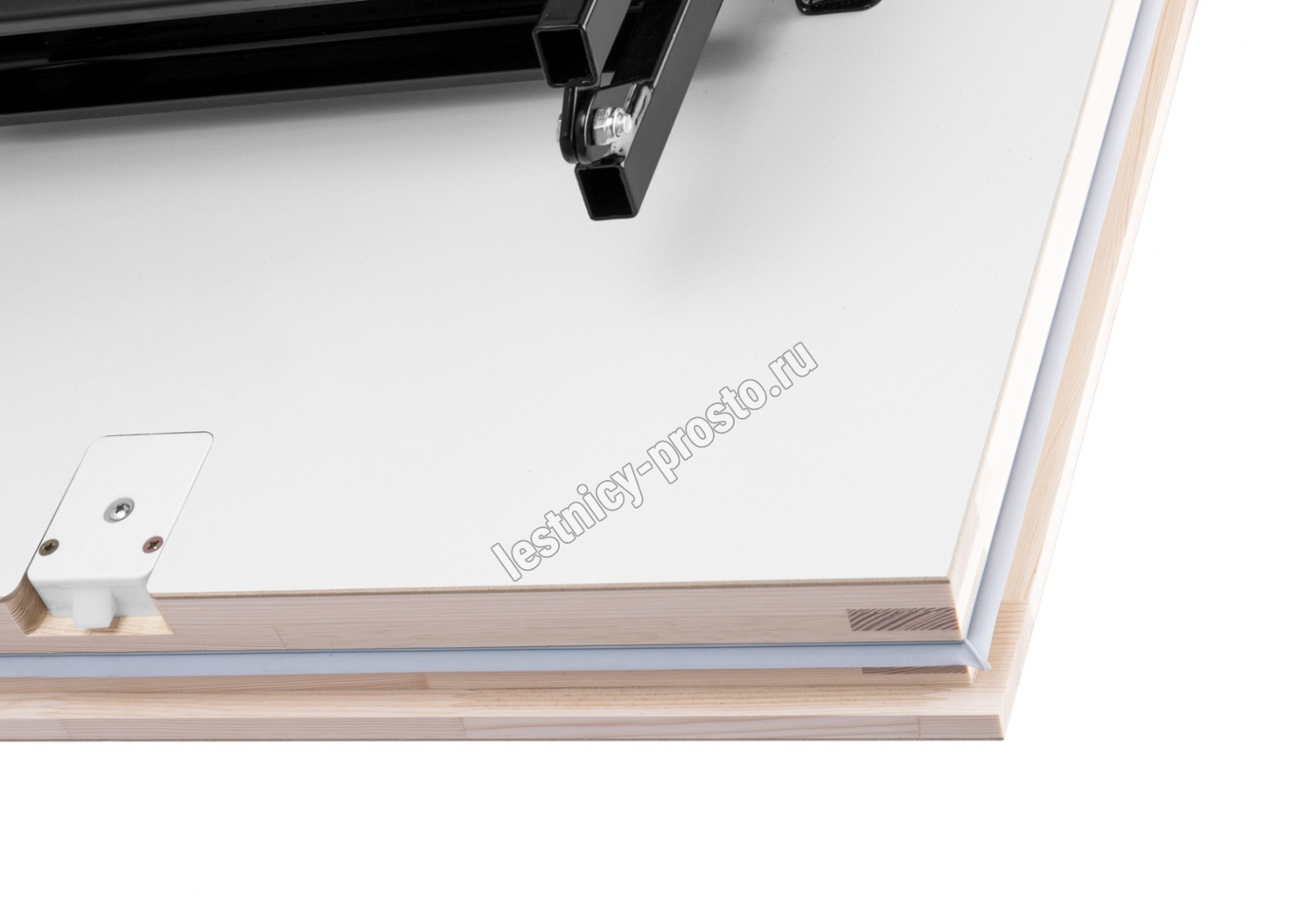 Лестница складная трехсекционная. Рабочая поверхность полностью выполнена из металла и покрашена порошковой краской. Термоизоляционная крышка типа "сэндвич", толщиной 86 мм, утеплена пенопластом, облицована с двух сторон ДCП белого цвета.