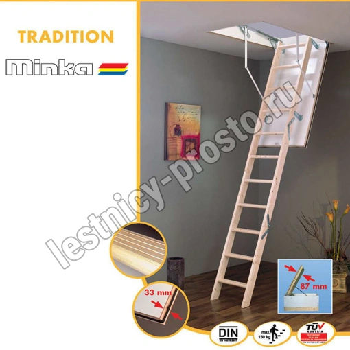 Чердачная складная лестница MINKA TRADITION 70×120 см, h-280 см