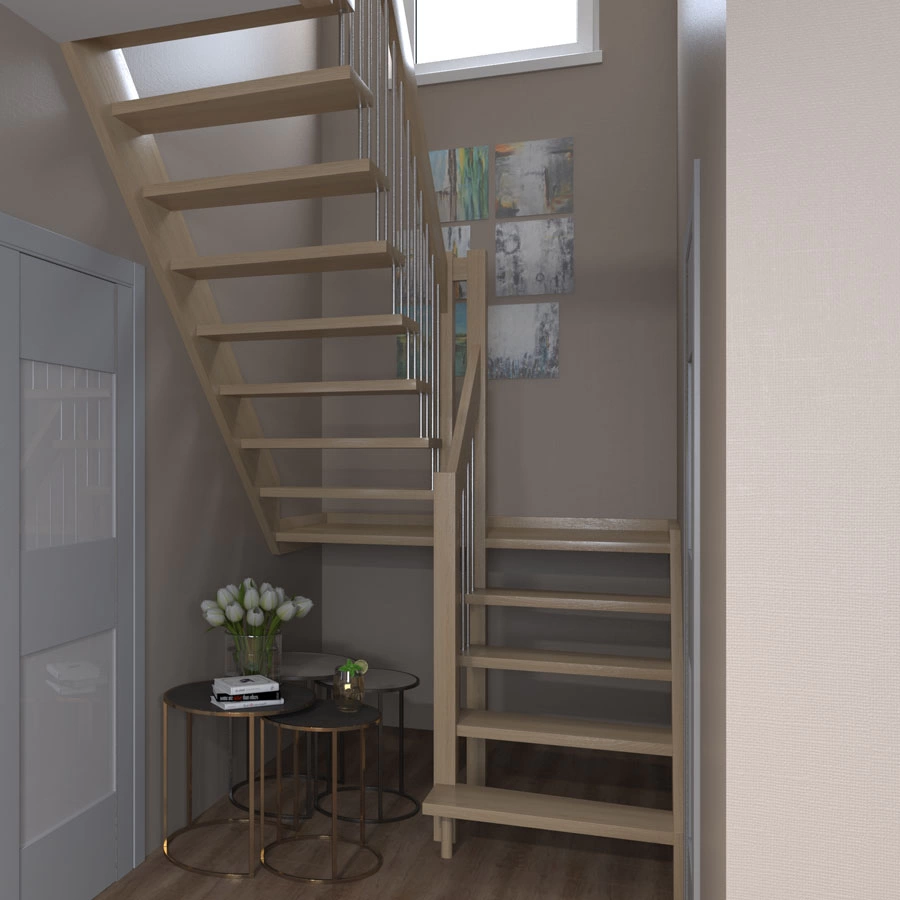 Лестница складная трёхсекционная, изготовлена из сосны. Термоизоляционная крышка типа "сэндвич" утеплена пенопластом, облицована с двух сторон ДСП белого цвета. Короб люка с однослойным уплотнителем. Все металлические элементы лестницы покрыты порошковой краской, ступени лестницы имеют антискользящие насечки и закреплены в столярное соединение «ласточкин хвост», что позволяет выдерживать нагрузку до 150 кг. Деревянный стержень для открывания лестницы в комплекте.