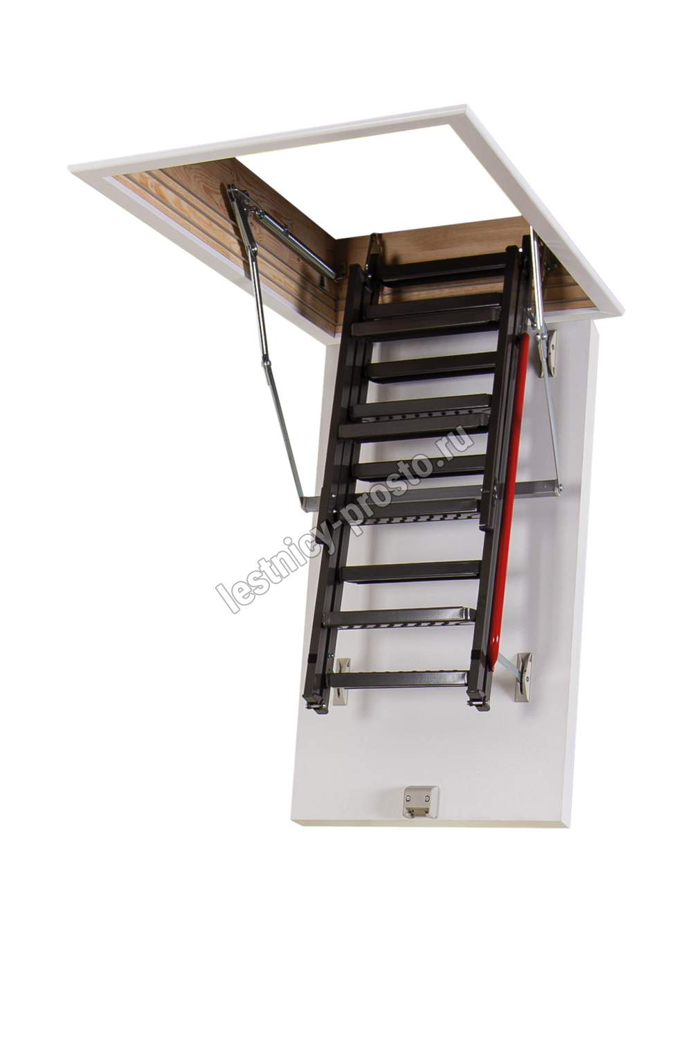 Лестница представляет собой складную конструкцию из металлического лестничного марша и термоизоляционного люка.