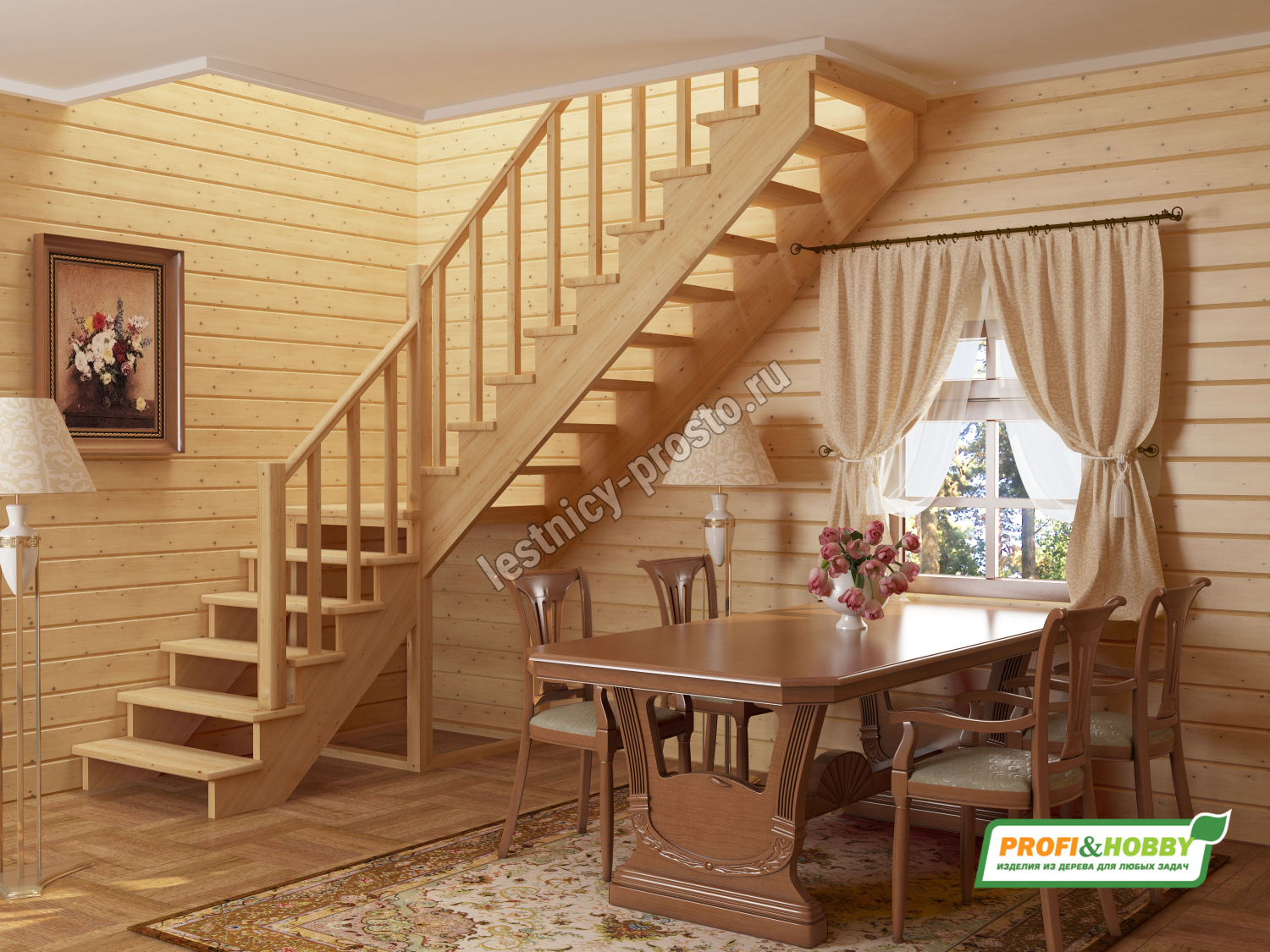 | Лестница из сосны К-002М/1 с подступёнками под покраску |