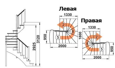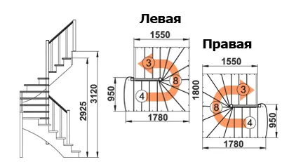 Высота лестницы 2925 - 3120