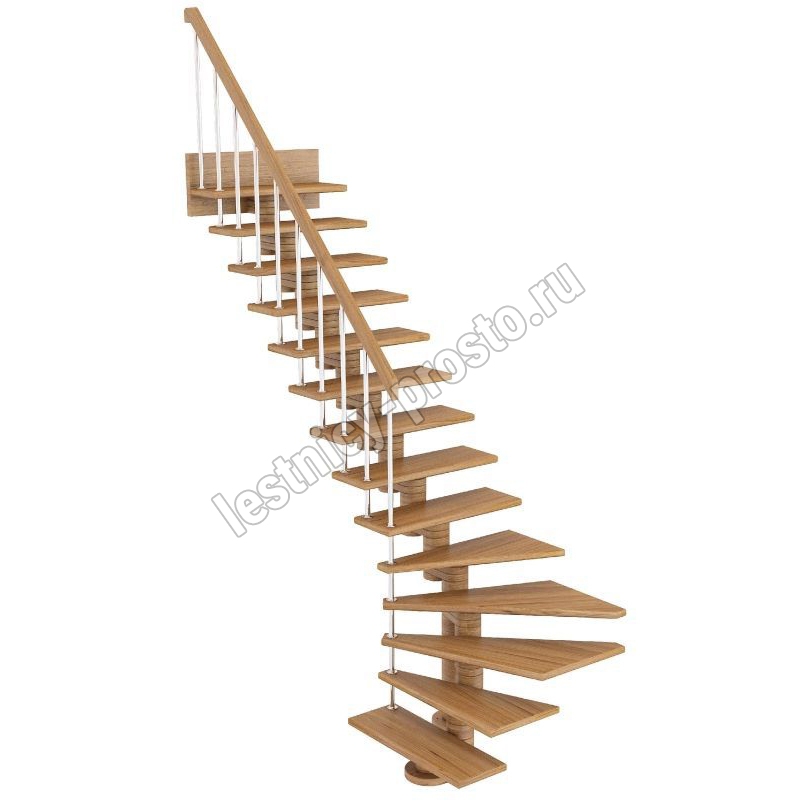 Современная лестница с "воздушным" дизайном. Смотрится легко и благородно, благодаря конструкции на больцах. Хороша при установке к стене, компактна.