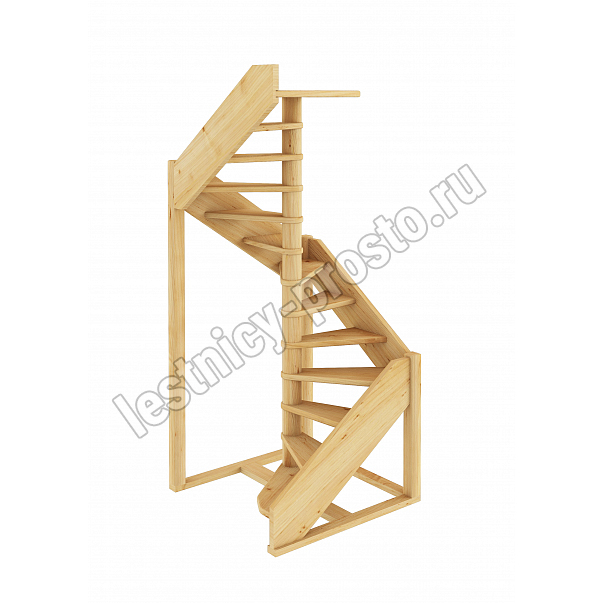 Небольшая аккуратная лестница, хорошо подойдет для помещения с небольшим проемом, поможет сэкономить пространство и организовать комфортный подъем на уровень выше. Возможны варианты лестницы из сосны под покраску, сосны, дуба, бука или ясеня. Для увеличения срока эксплуатации мы рекомендуем покрыть элементы лестницы защитным средством. Вы можете сделать это самостоятельно или заказать предварительное покрытие необходимым средством (или тонирование) в нашем цеху.