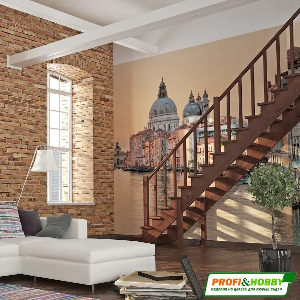 Традиционная лестница, простая в сборке. В процессе установки этой универсальной модели, ограждение можно смонтировать с необходимой стороны (слева или справа).