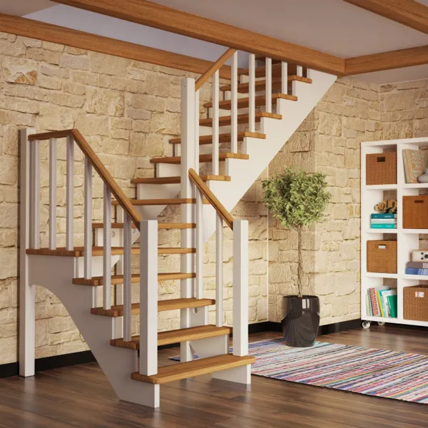 Базовый комплект включает в себя деревянные элементы лестницы без какого-либо покрытия. Лестница поставляется в разобранном виде.