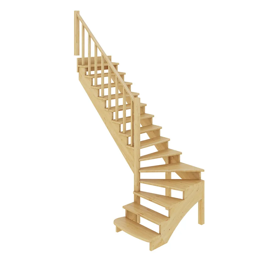 Базовый комплект включает в себя деревянные элементы лестницы и ограждения без какого-либо покрытия