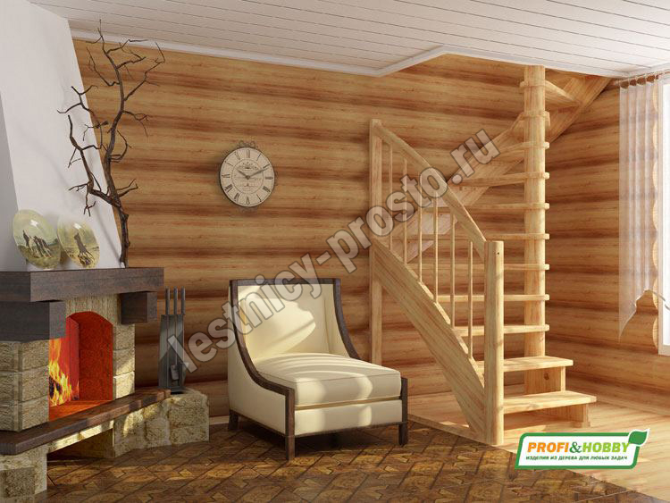 Ступени и поручень лестницы изготовлены из бука, остальные элементы из сосны.