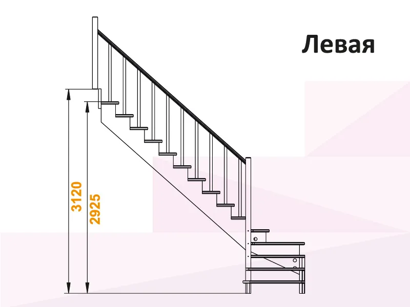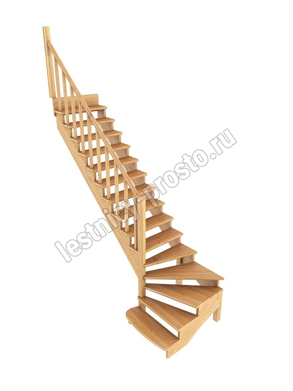 Ступени и поручень лестницы изготовлены из дуба, остальные элементы из сосны. Возможно изготовление модели полностью из дуба. Базовый комплект включает в себя деревянные элементы лестницы и ограждения без какого-либо покрытия. Вы можете заказать у нас покраску лестницы в цвета, отвечающие особенностям вашего помещения.