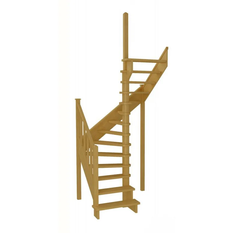 Ступени и поручень изготовлены из дуба, остальные элементы лестницы из сосны.