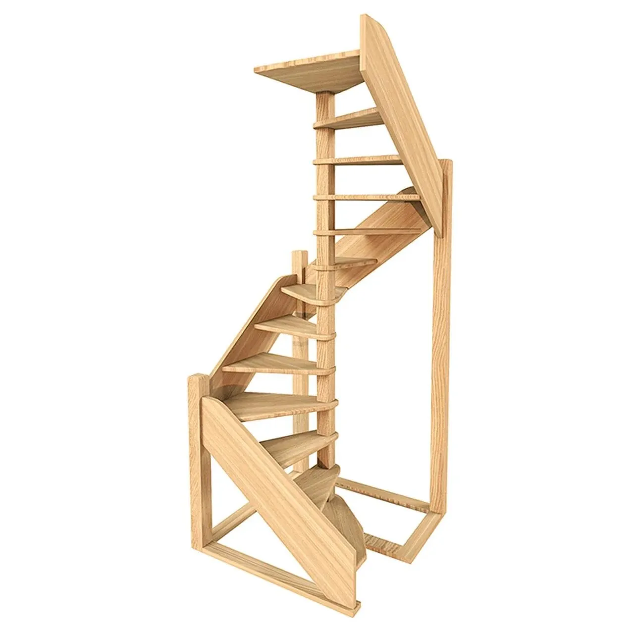 Ступени и поручень лестницы изготовлены из дуба, остальные элементы из сосны.
