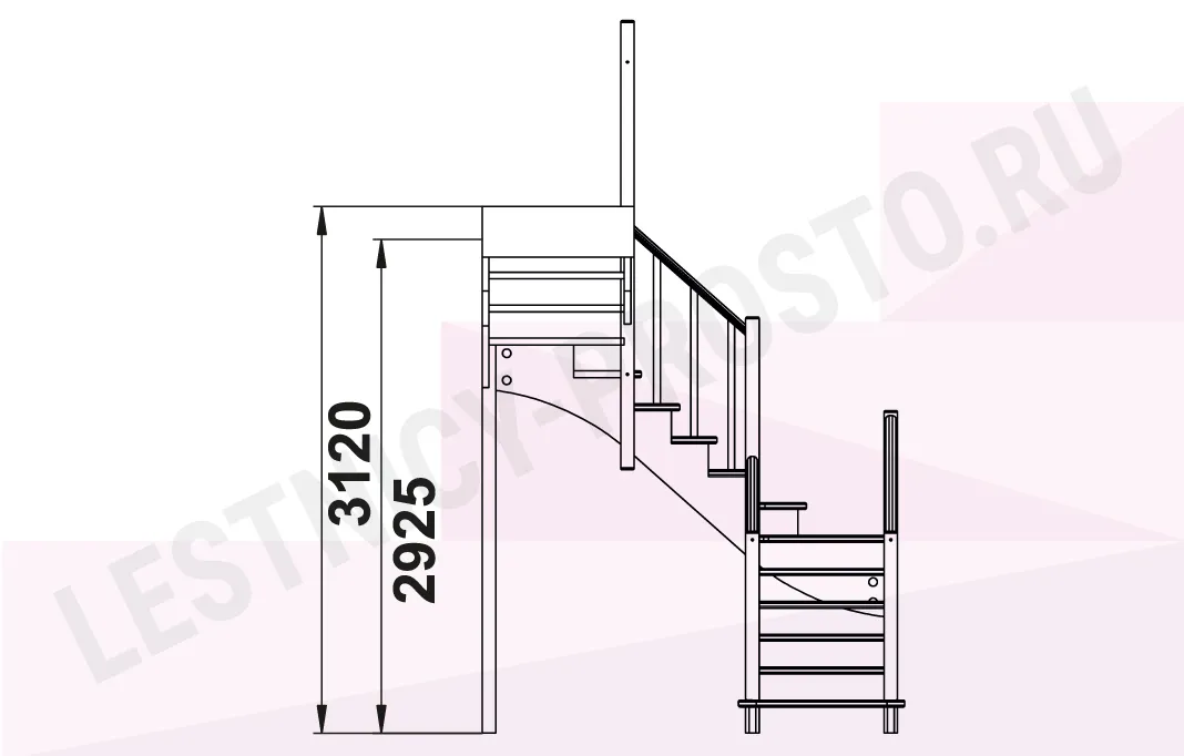 Лестница К-009М/2 с поворотом налево