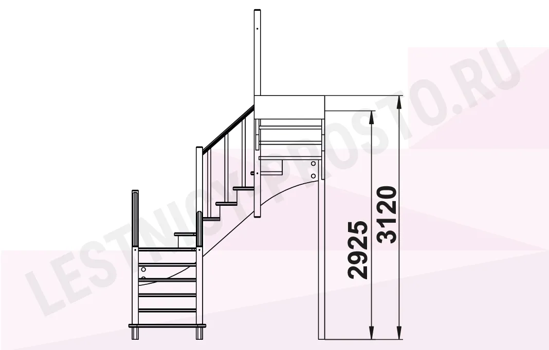 Схема лестницы К-009М/2 с повооротом налево