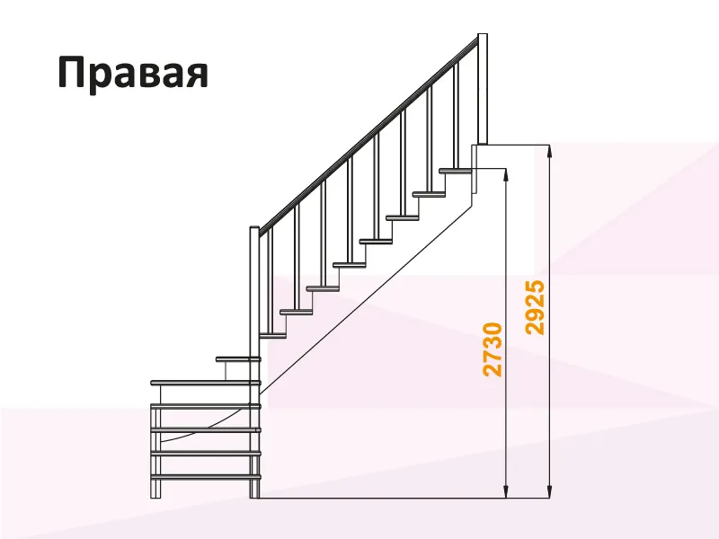 • Базовое ограждение (прямые столбы и балясины), сосна - по одной на ступень