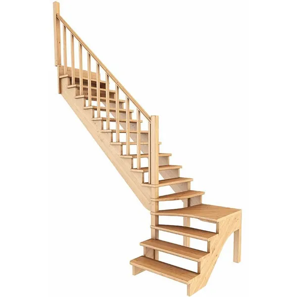 Базовый комплект включает в себя деревянные элементы лестницы и ограждения без какого-либо покрытия.