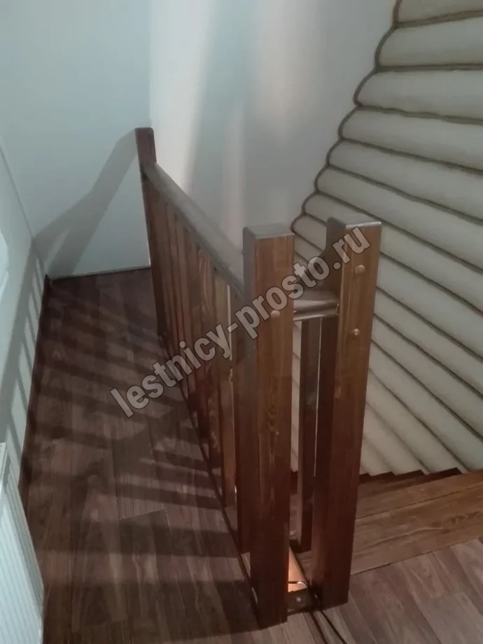 Обратите внимание! данная модель изготовлена из сосны эконом-класса, имеющей заметные синие/серые фрагменты, эта особенность не отражается на механических свойствах лестницы, но может оказаться видимой при покраске в светлые тона.