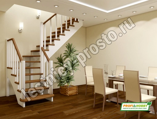 Базовый комплект включает в себя деревянные элементы лестницы и ограждения без какого-либо покрытия.