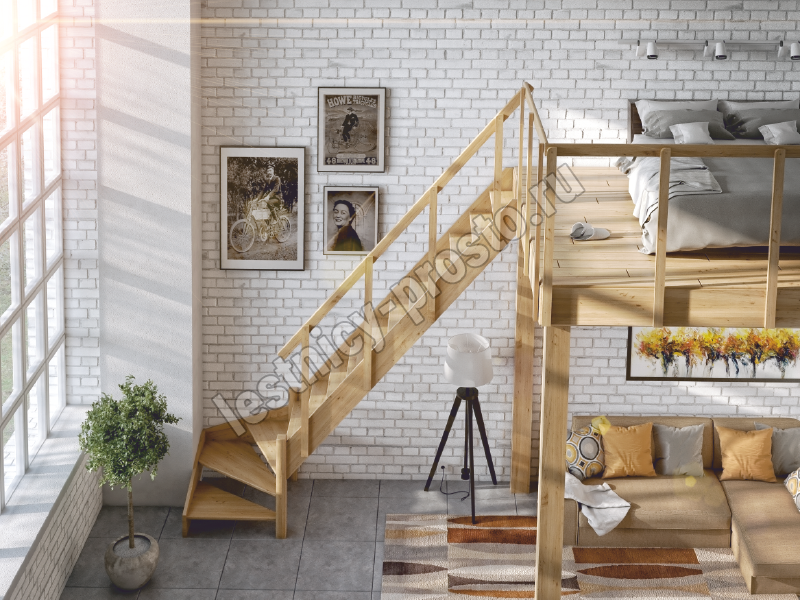 Базовый комплект включает в себя деревянные элементы лестницы без какого-либо покрытия.
