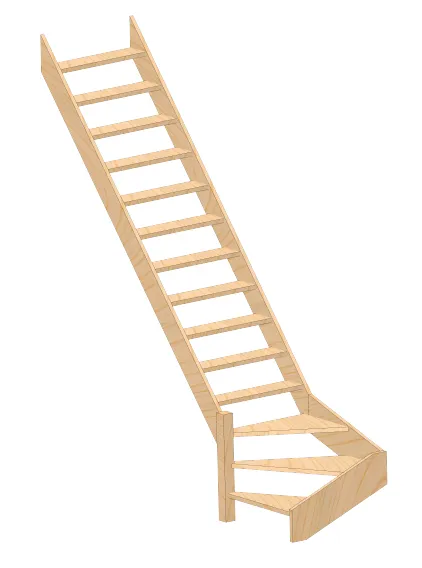 Базовый комплект включает в себя деревянные элементы лестницы без какого-либо покрытия.