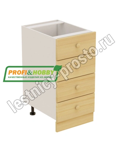 Тумба 4 ящика 400х530х720 + фасад сосна бесцветный акриловый лак