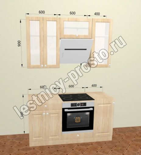 Кухня 1.6 х 2.32 м, массив сосны, бесцветный акриловый лак