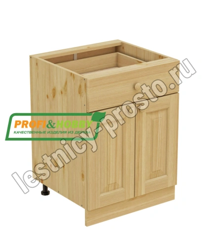 Тумба 2 двери, 1 ящик 600 х 560 х 720 сосна, бесцветный акриловый лак
