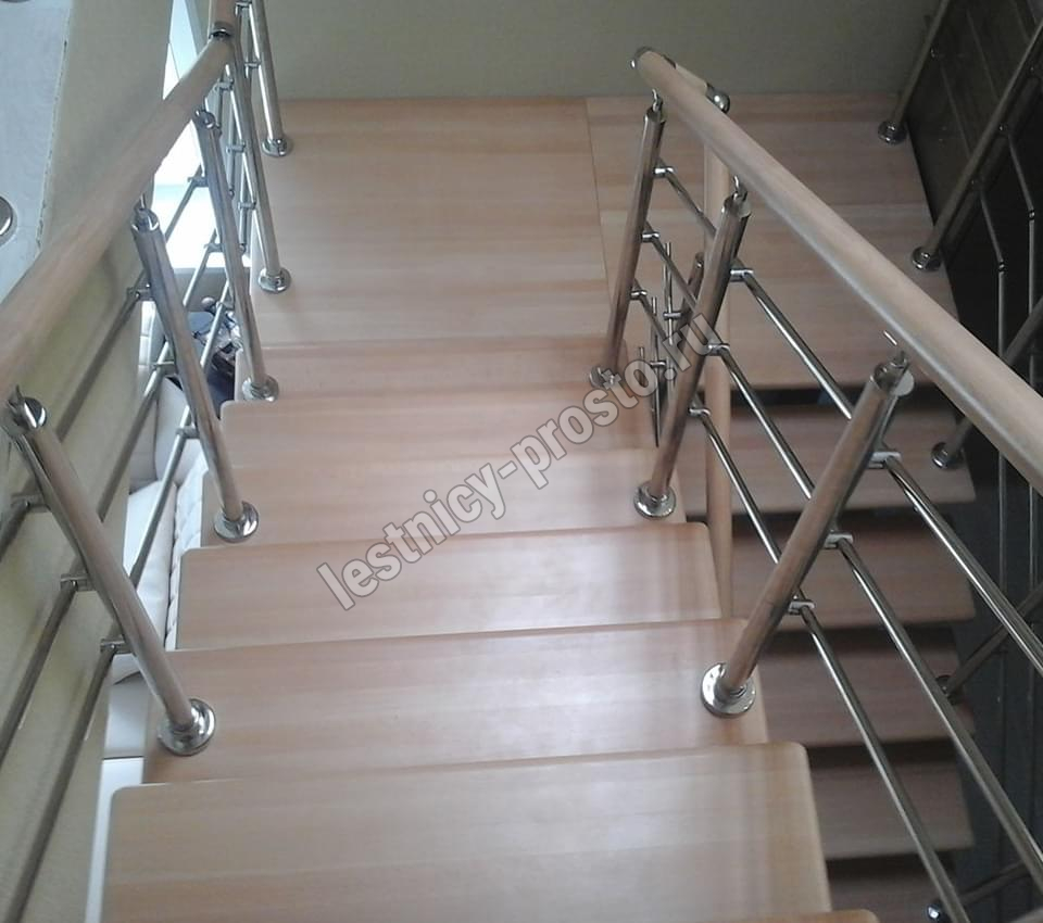 Ступени этого варианта лестницы изготовлены из сращенного бука категории АВ, без какого-либо покрытия.