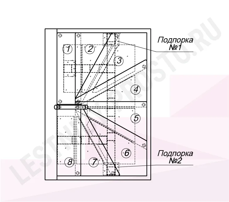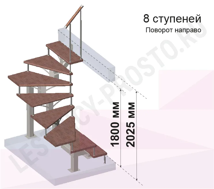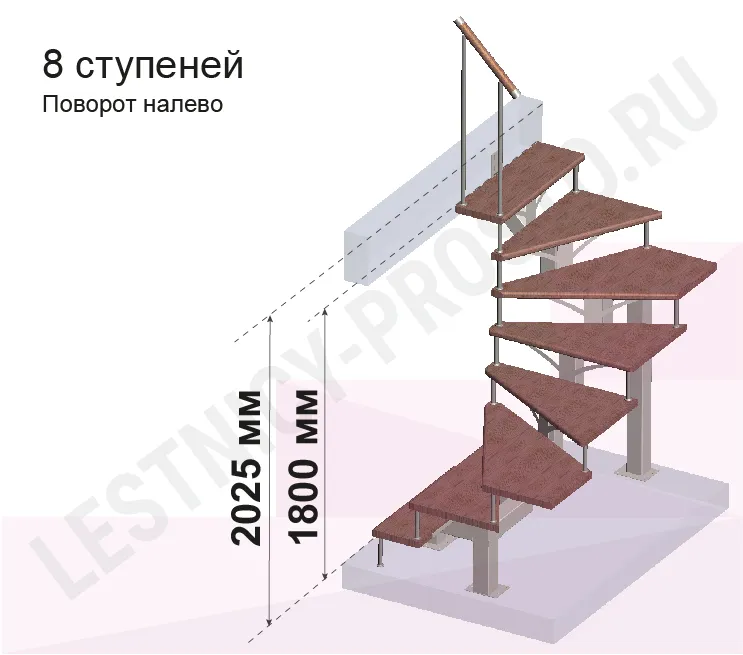 Высота лестницы 1800 - 2025 (8 ступеней) мм