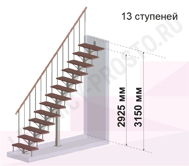 Лестница PROSTO MONO прямая, h315 см, ступени бук