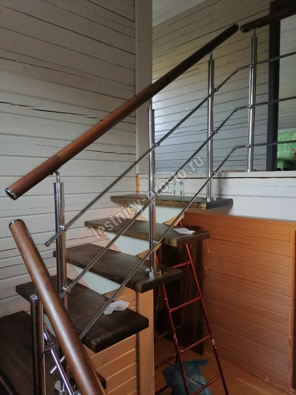 Конструкция представляет собой стальной монокосоур, на который крепятся ступени из выбранной породы дерева.