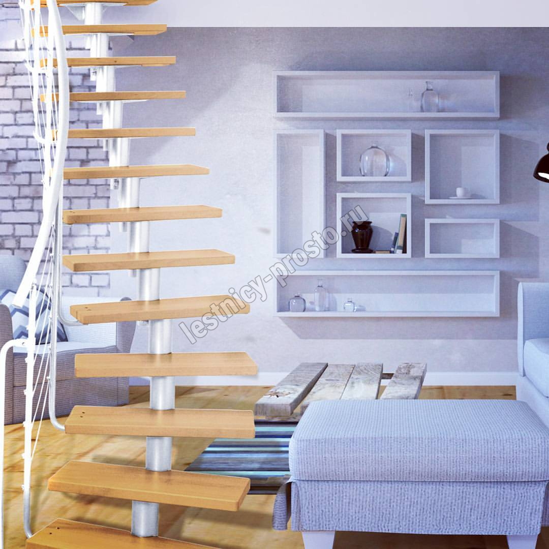 Лестница на стальном модульном каркасе. Высота лестницы регулируется при сборке засчет регулировки высоты шага. Ступени покрыты защитным лаком. Ограждение из стали с пластиковым поручнем. В комплект входят перила с вертикальными стойками и горизонтальными перегородками. Изделие поставляется с шурупами (кроме потолочных и напольных анкеров), инструкциями по монтажу и эксплуатации и гарантией. Внимание! Для этой лестницы необходимо крепление к стене.
