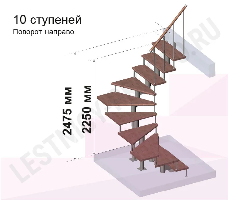 Высота лестницы 2250 - 2475 (10 ступеней) мм