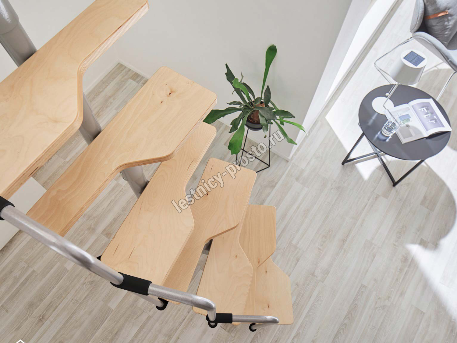 Ступени изготовлены из очень прочной покрытой лаком фанеры толщиной 30 мм.