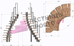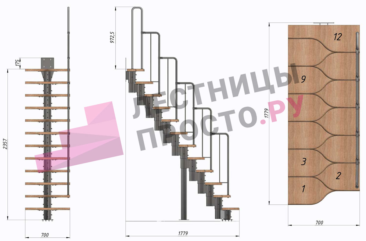 | Лестница Prosto Urban Black гусиный шаг 700 мм, h216-312 см (12 ступеней), бук |