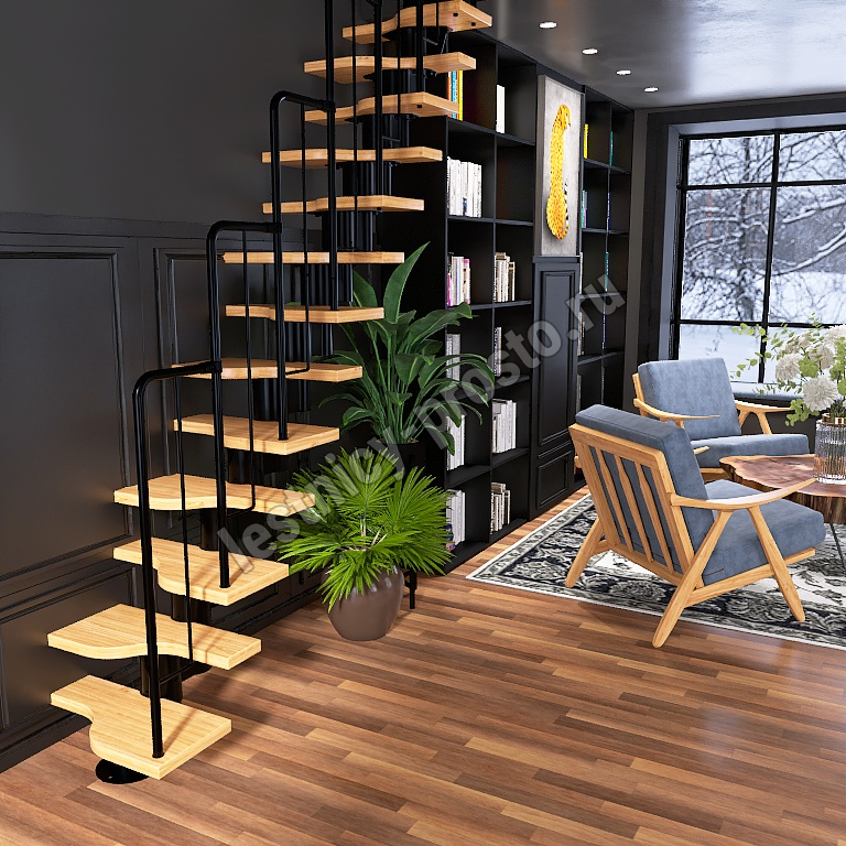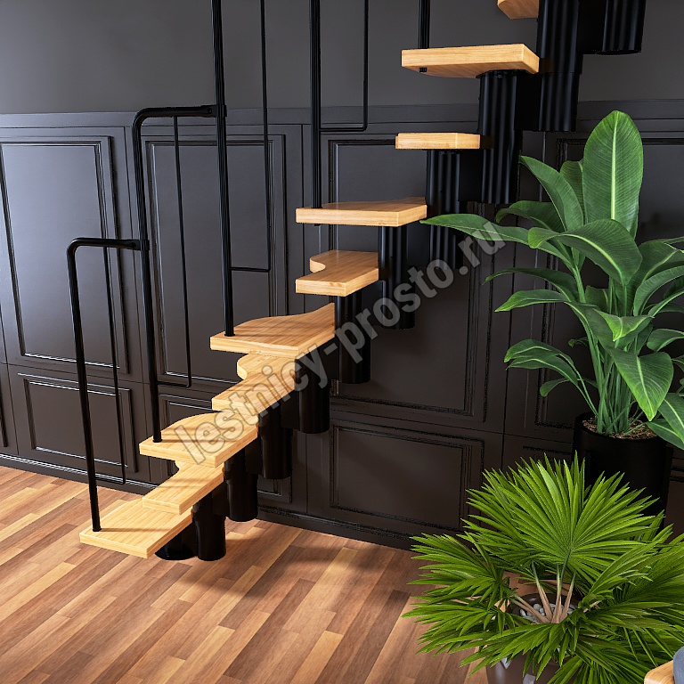 | Лестница Prosto Urban Black гусиный шаг 700 мм, h198-288 см (11 ступеней), бук |