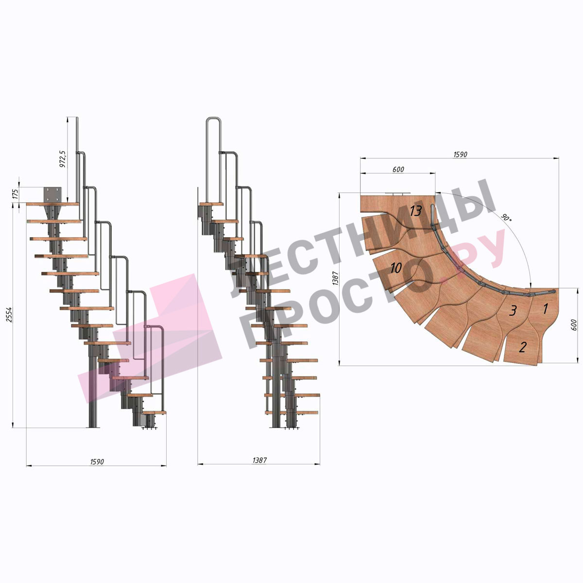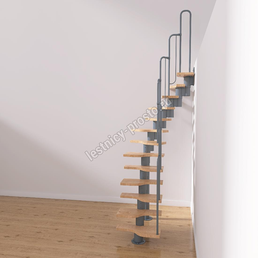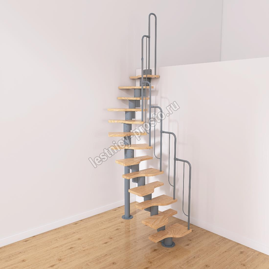 Лестница Prosto Urban Grey г-образная гусиный шаг 600 мм, h234-336 см (13 ступеней)