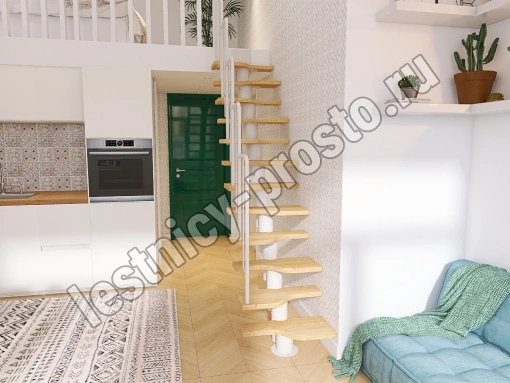 Лестница Prosto Urban White гусиный шаг 600 мм, h216-312 см (12 ступеней), ясень