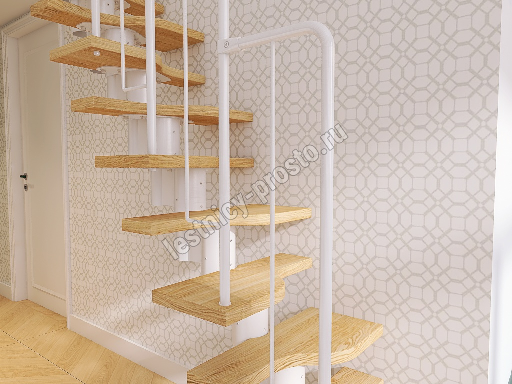 Лестница Prosto Urban White гусиный шаг 600 мм, h216-312 см (12 ступеней), берёза мультиплекс