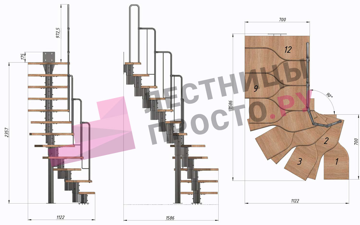 Высота лестницы 1980 - 3600 мм