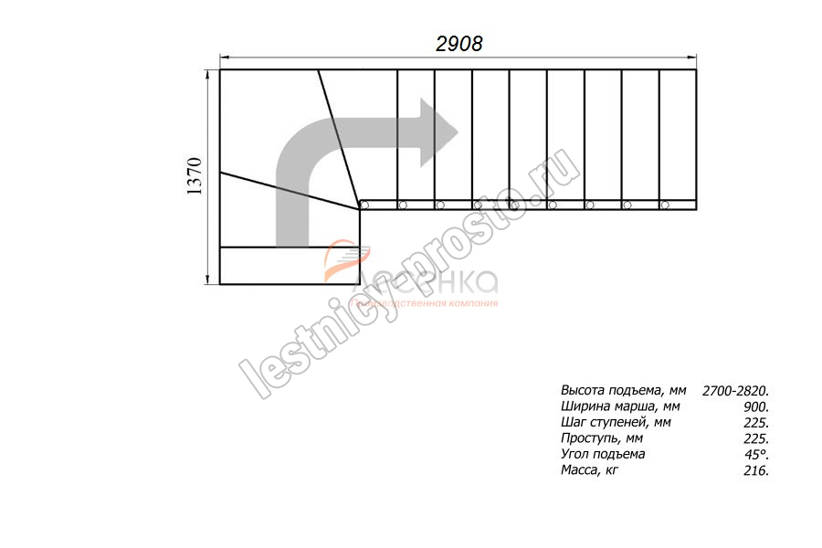 Модульная лестница Фаворит 225 2700-2820, Серый, Бук, Нержавеющая сталь