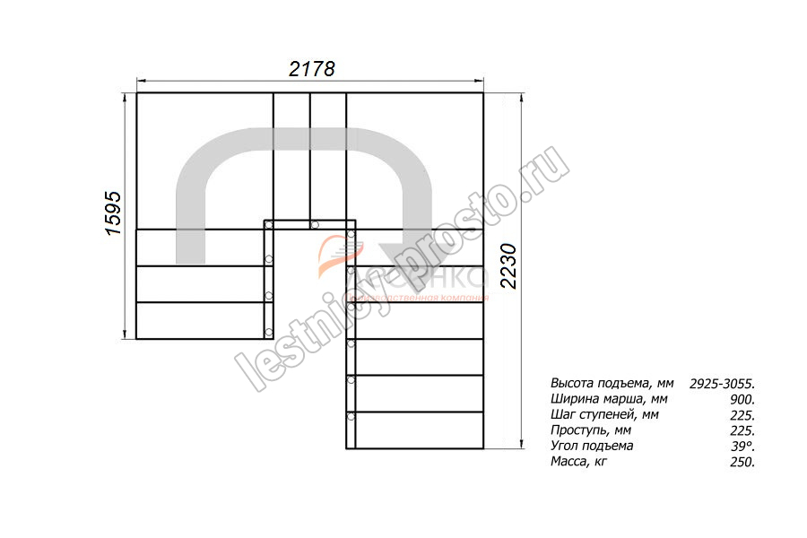 Модульная лестница Комфорт 225 2925-3055, Серый, Сосна, Крашеная, Без Ступений