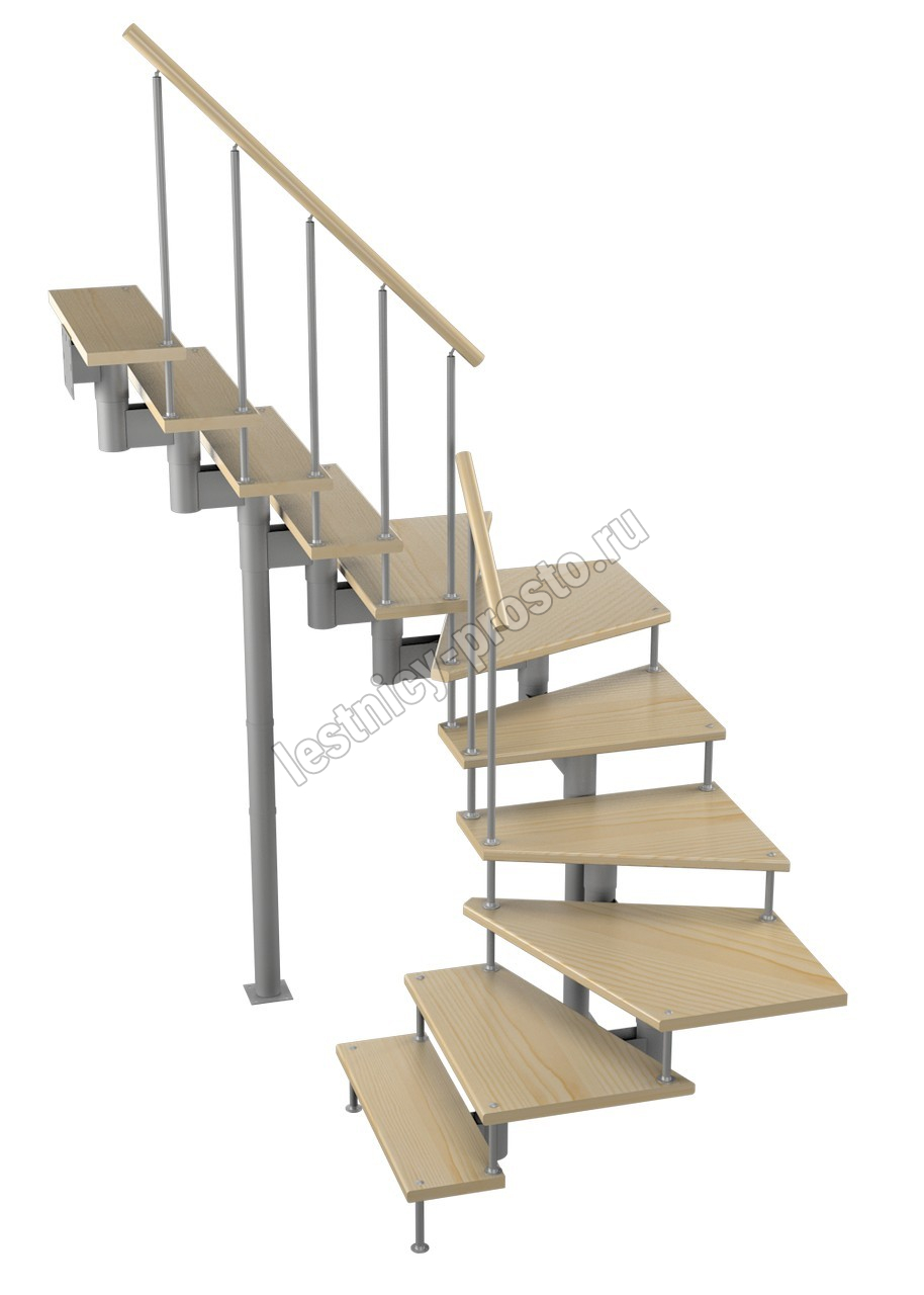 Модульная лестница Спринт 225 2475-2585, Серый, Сосна, Крашеная