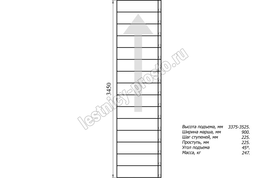 Модульная лестница Стандарт 3375-3525, Серый, Сосна, Крашеная