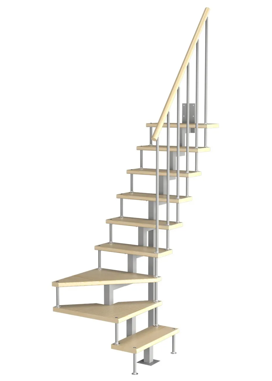 Модульная малогабаритная лестница Эксклюзив 2250-2475, Серый, Бук, Нержавеющая сталь