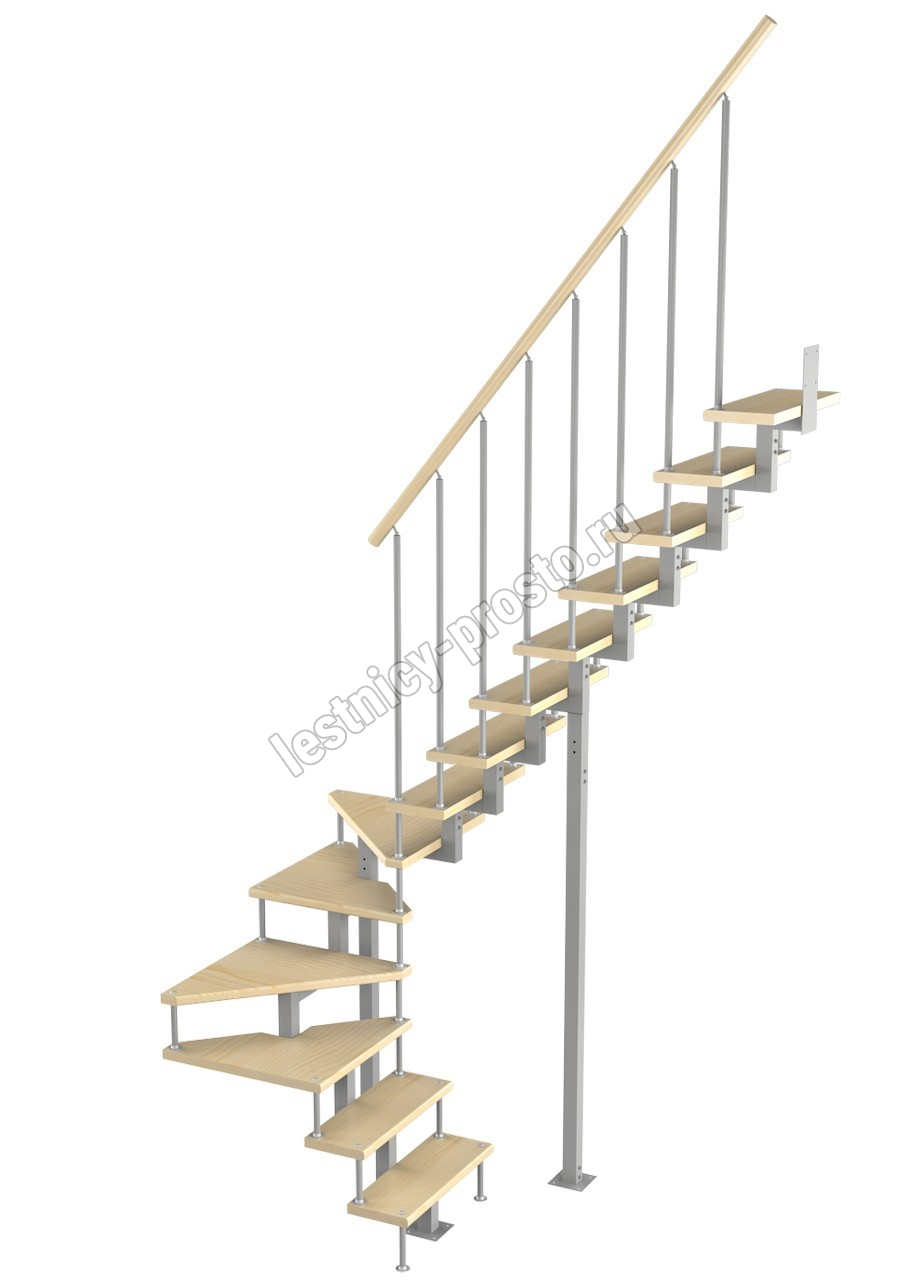 Модульная малогабаритная лестница Эксклюзив 3150-3375, Серый, Сосна, Нержавеющая сталь