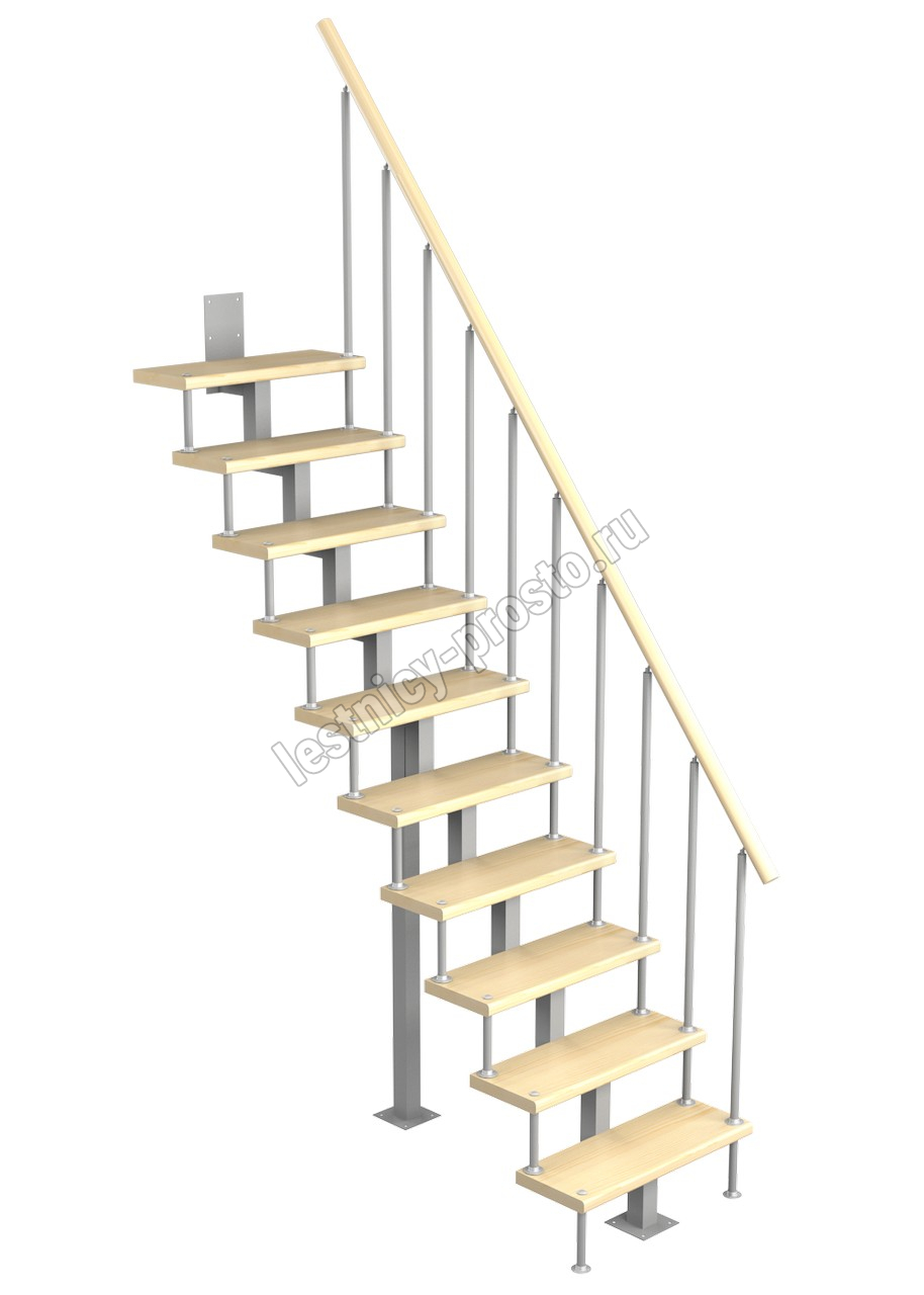 Модульная малогабаритная лестница Линия 2250-2475, Серый, Сосна, Крашеная