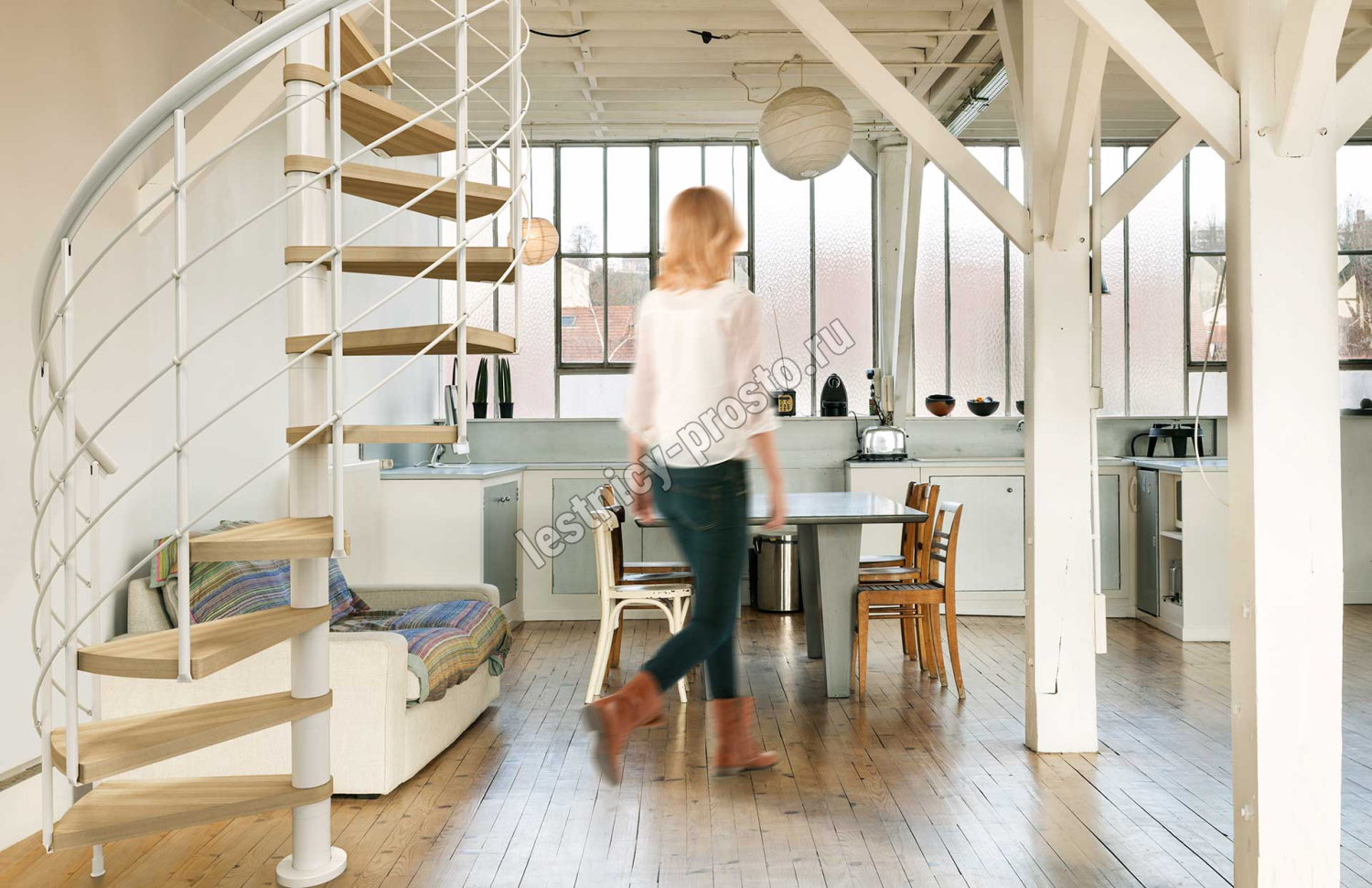 Винтовая лестница Montreal STYLE белая, d160 см, h279,5-305,5 см