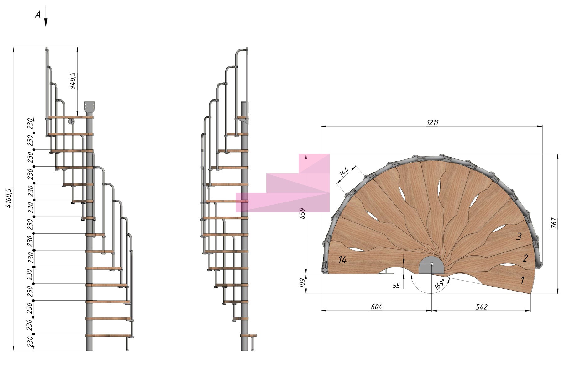 | Винтовая лестница PROSTO MINI 60×120 см, h322-345 см |