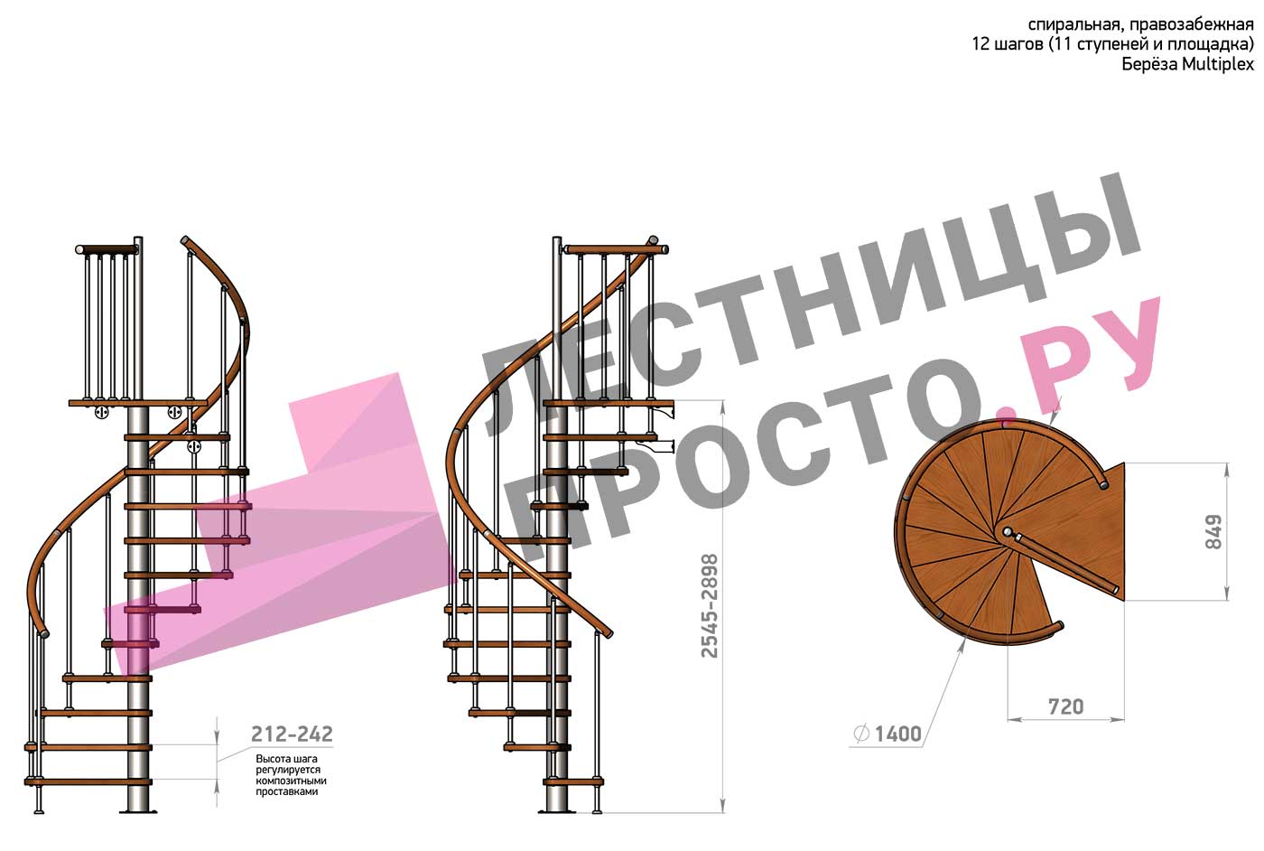 Высота лестницы 2545 - 2898 (11 ступеней) мм